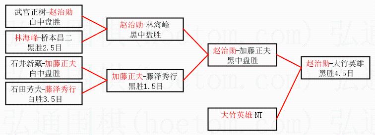 1.赵治勋获得冠军,大竹英雄获得亚军。决赛比分:赵治勋2:1大竹英雄。棋局:
