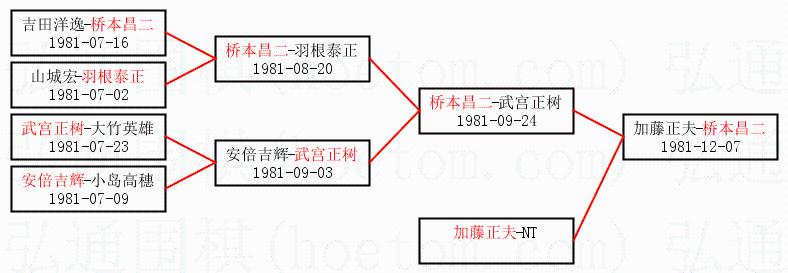 1.桥本昌二获得冠军,加藤正夫获得亚军。决赛比分:桥本昌二2:1加藤正夫。棋局: