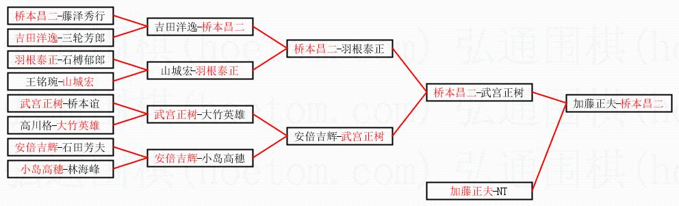 1.桥本昌二获得冠军,加藤正夫获得亚军。决赛比分:桥本昌二2:1加藤正夫。棋局: