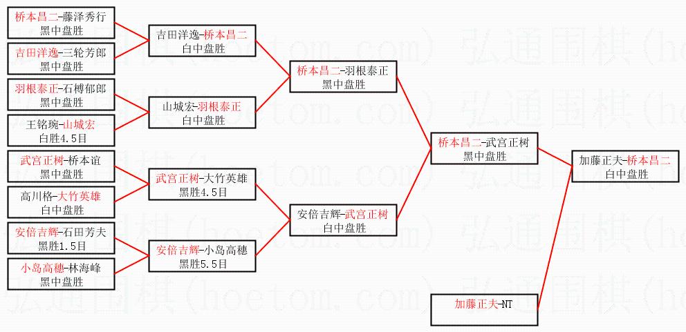 2.上半区半决赛桥本昌二获胜, 比分:桥本昌二 1:0 武宫正树。棋局: