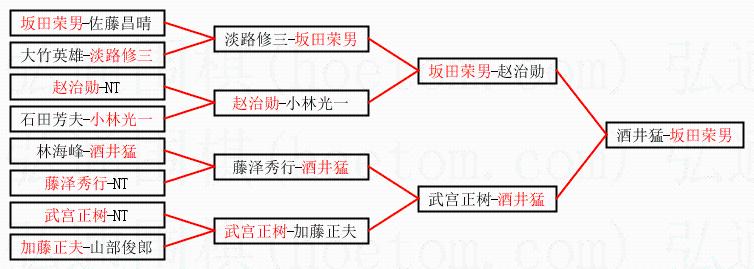 1.坂田荣男获得冠军,酒井猛获得亚军。决赛比分:坂田荣男1:0酒井猛。棋局: