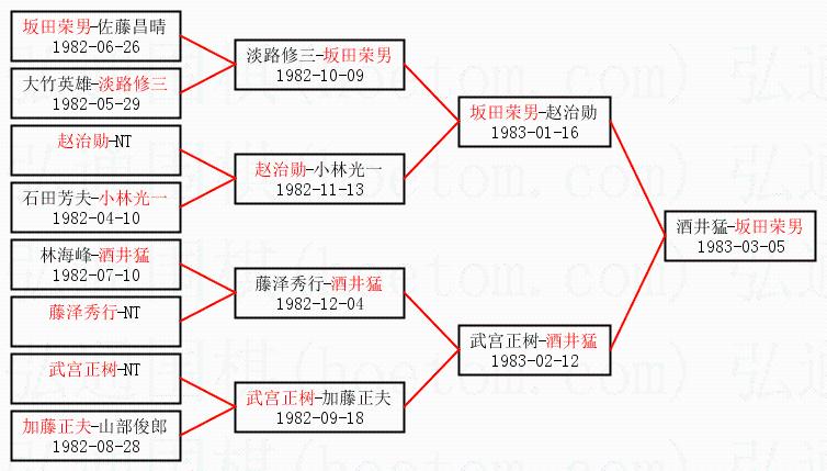 1.坂田荣男获得冠军,酒井猛获得亚军。决赛比分:坂田荣男1:0酒井猛。棋局: