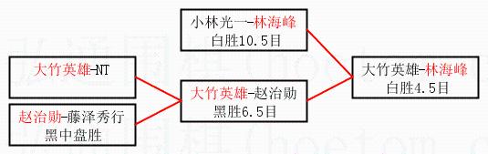 3.下半区半决赛大竹英雄获胜,比分:大竹英雄1:0赵治勋。棋局: