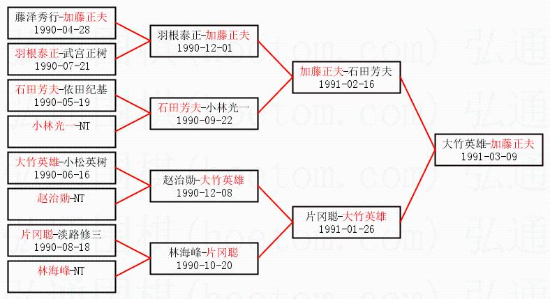 1.加藤正夫获得冠军,大竹英雄获得亚军。决赛比分:加藤正夫1:0大竹英雄。棋局: