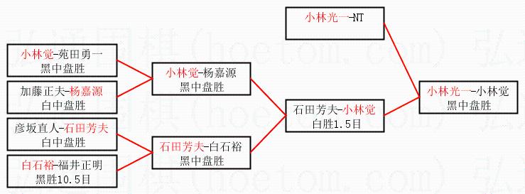 1.小林光一获得冠军,小林觉获得亚军。决赛比分:小林光一3:2小林觉。棋局: