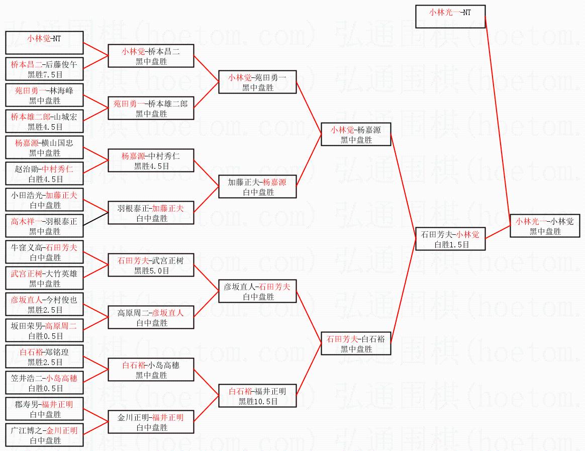 1.小林光一获得冠军,小林觉获得亚军。决赛比分:小林光一3:2小林觉。棋局: