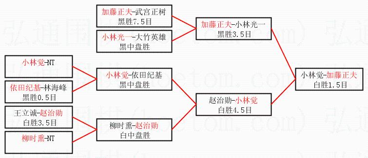 1.加藤正夫获得冠军,小林觉获得亚军。决赛比分:加藤正夫1:0小林觉。棋局: