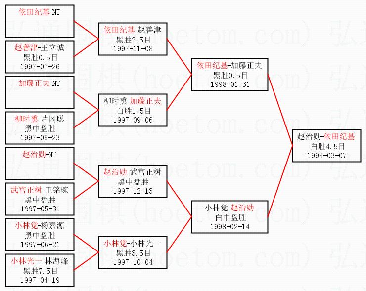 1.依田纪基获得冠军,赵治勋获得亚军。决赛比分:依田纪基1:0赵治勋。棋局: