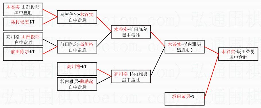 | 1.木谷实获得冠军,坂田荣男获得亚军。决赛比分:木谷实3:1坂田荣男。棋局: | ||