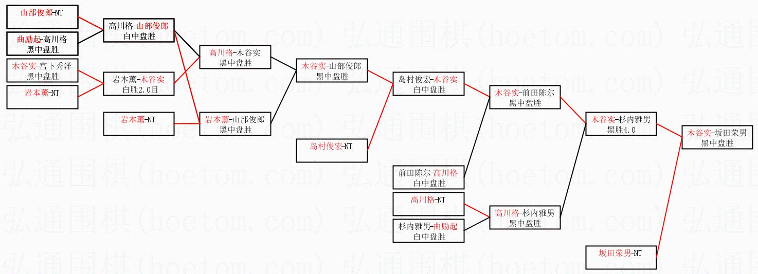 | 1.木谷实获得冠军,坂田荣男获得亚军。决赛比分:木谷实3:1坂田荣男。棋局: | ||