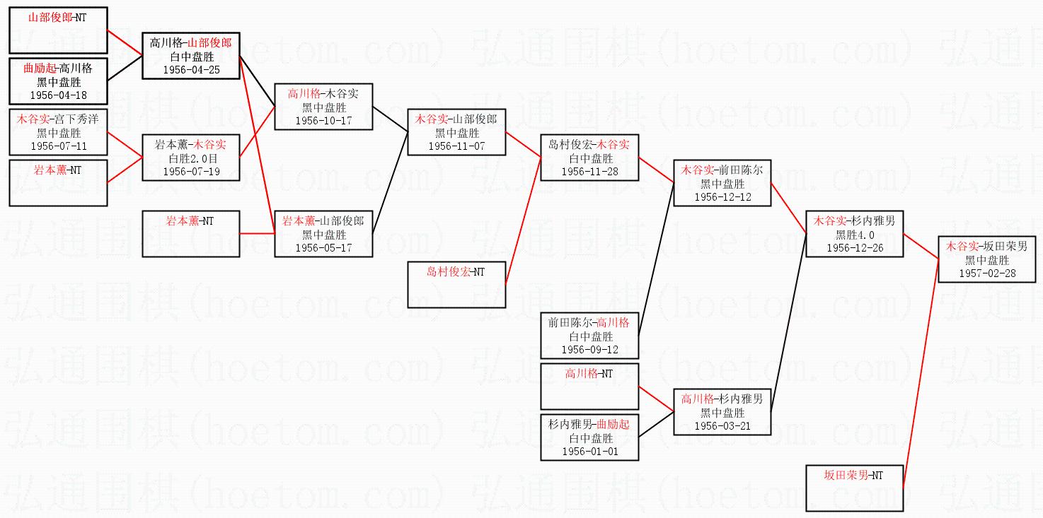 1.木谷实获得冠军,坂田荣男获得亚军。决赛比分:木谷实3:1坂田荣男。棋局: