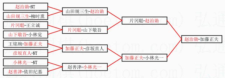 2.上半区半决赛赵治勋获胜, 比分:赵治勋 1:0 片冈聪。棋局: