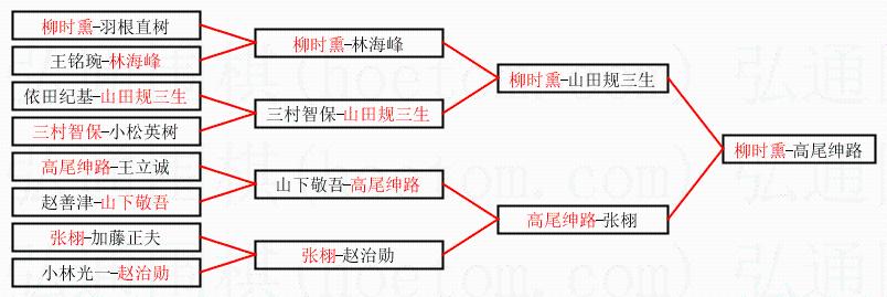 1.柳时熏获得冠军,高尾绅路获得亚军。决赛比分:柳时熏1:0高尾绅路。棋局:
