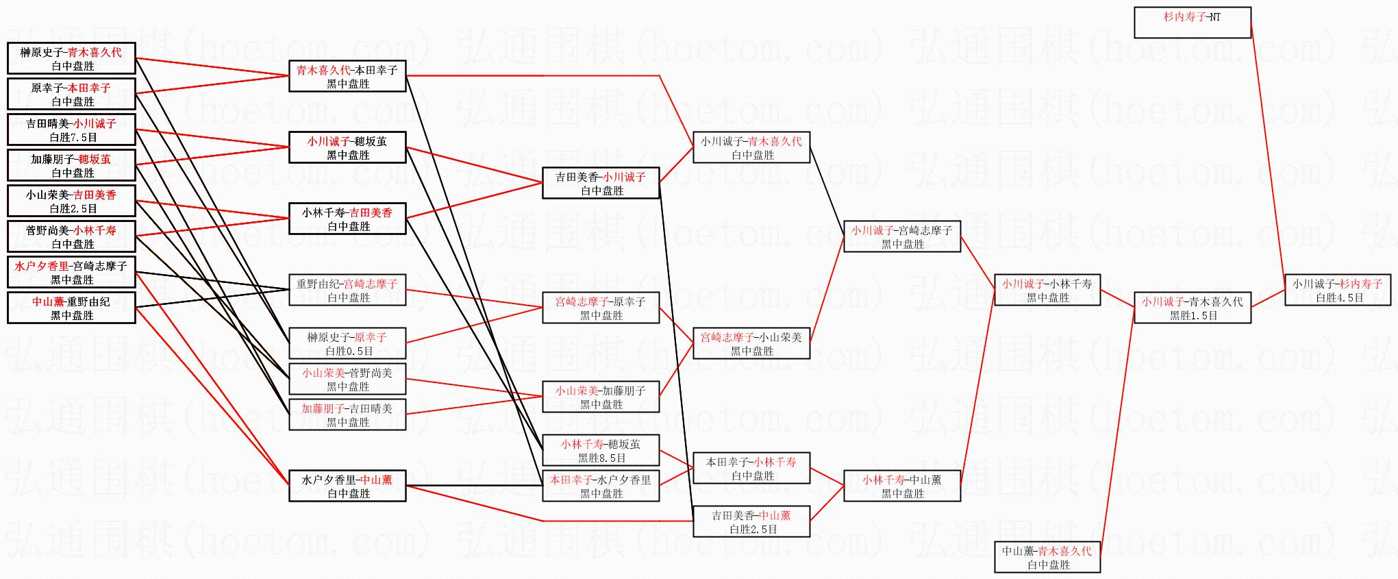 | 1.杉内寿子获得冠军,小川诚子获得亚军。决赛比分:杉内寿子2:1小川诚子。棋局: | ||