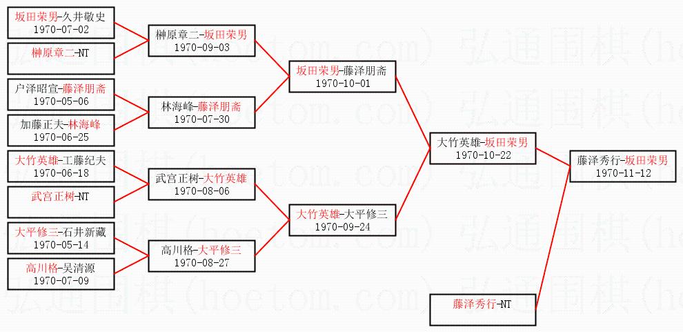 1.坂田荣男获得冠军,藤泽秀行获得亚军。决赛比分:坂田荣男2:0藤泽秀行。棋局: