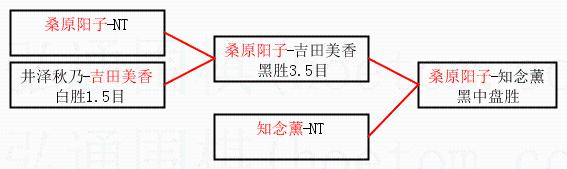 2.上半区半决赛桑原阳子获胜, 比分:桑原阳子 1:0 吉田美香。棋局: