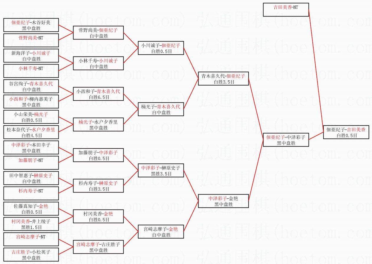 1.吉田美香获得冠军,佃亜纪子获得亚军。决赛比分:吉田美香2:0佃亜纪子。棋局: