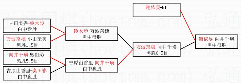 1.谢依旻获得冠军,向井千瑛获得亚军。决赛比分:谢依旻2:1向井千瑛。棋局: