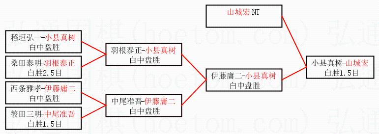 1.山城宏获得冠军,小县真树获得亚军。决赛比分:山城宏1:0小县真树。棋局: