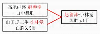 2.上半区半决赛赵善津获胜, 比分:赵善津 1:0 高尾绅路。棋局: