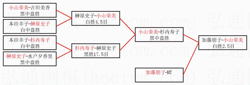 | 1.小山荣美获得冠军,加藤朋子获得亚军。决赛比分:小山荣美2:1加藤朋子。棋局: | ||
