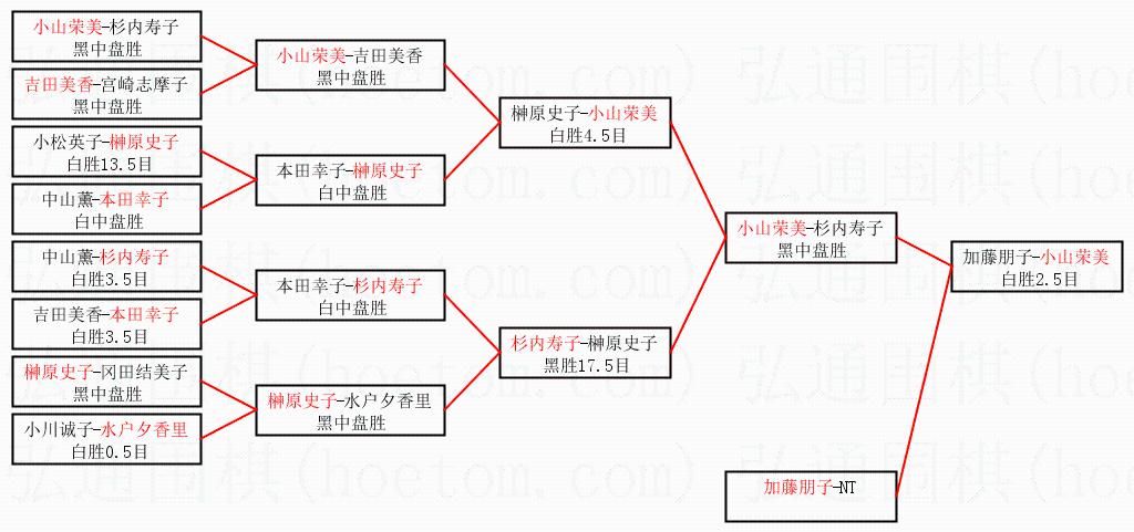 | 1.小山荣美获得冠军,加藤朋子获得亚军。决赛比分:小山荣美2:1加藤朋子。棋局: | ||