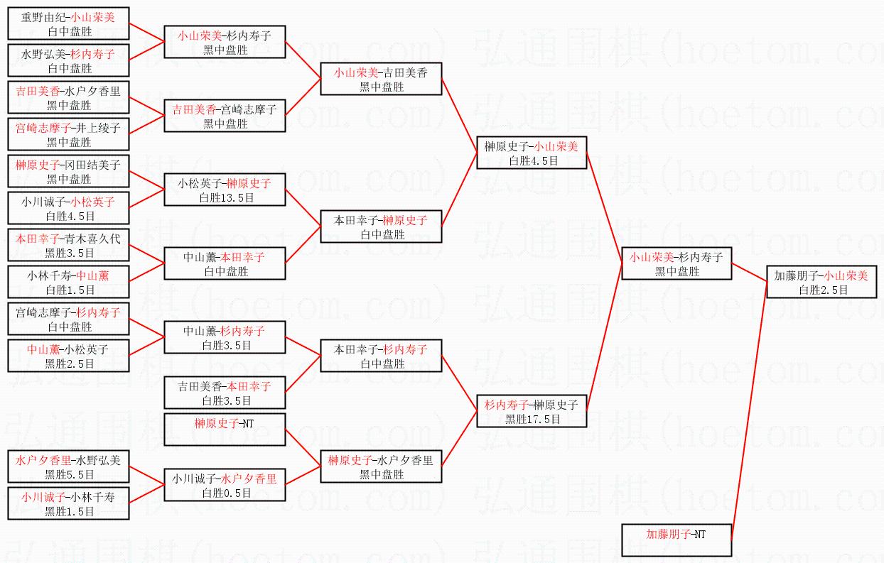| 1.小山荣美获得冠军,加藤朋子获得亚军。决赛比分:小山荣美2:1加藤朋子。棋局: | ||