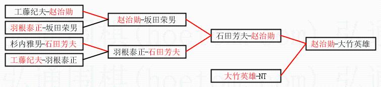 2.上半区半决赛赵治勋获胜, 比分:赵治勋 1:0 石田芳夫。棋局: