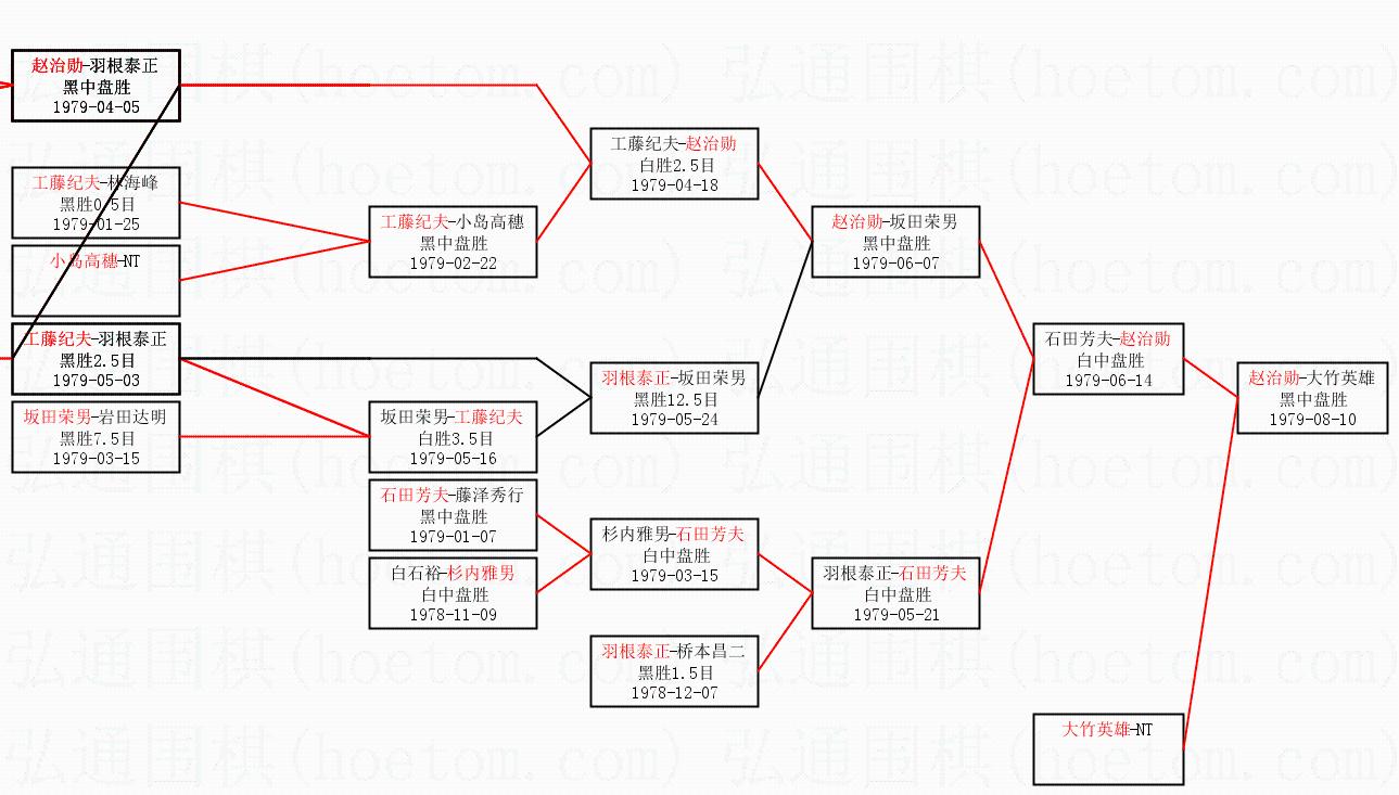 1.赵治勋获得冠军,大竹英雄获得亚军。决赛比分:赵治勋3:0大竹英雄。棋局: