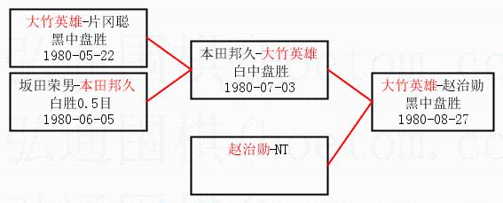 1.大竹英雄获得冠军,赵治勋获得亚军。决赛比分:大竹英雄3:1赵治勋。棋局: