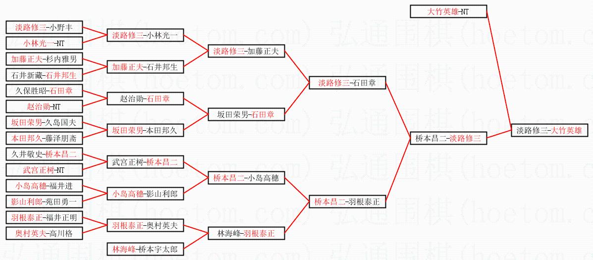 | 1.大竹英雄获得冠军,淡路修三获得亚军。决赛比分:大竹英雄3:2淡路修三。棋局: | ||