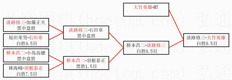 3.下半区半决赛淡路修三获胜,比分:淡路修三1:0桥本昌二。棋局: