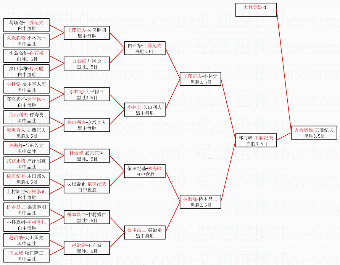 | 1.大竹英雄获得冠军,工藤纪夫获得亚军。决赛比分:大竹英雄3:1工藤纪夫。棋局: | ||