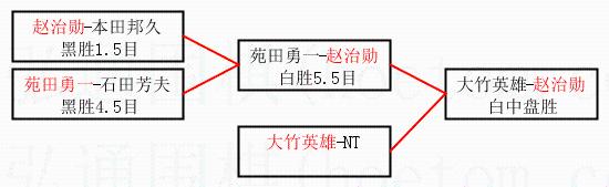 2.上半区半决赛赵治勋获胜, 比分:赵治勋 1:0 苑田勇一。棋局: