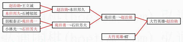 2.上半区半决赛赵治勋获胜, 比分:赵治勋 1:0 苑田勇一。棋局: