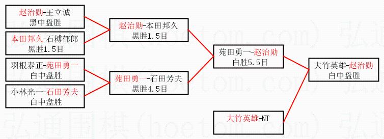 2.上半区半决赛赵治勋获胜, 比分:赵治勋 1:0 苑田勇一。棋局: