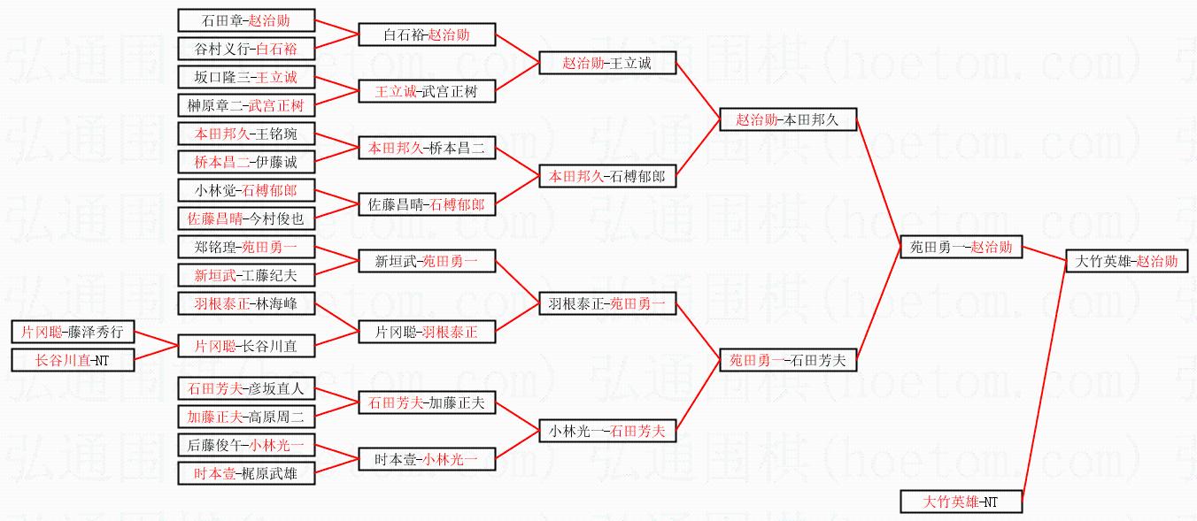 2.上半区半决赛赵治勋获胜, 比分:赵治勋 1:0 苑田勇一。棋局: