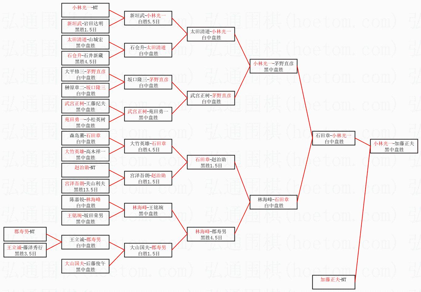 1.小林光一获得冠军,加藤正夫获得亚军。决赛比分:小林光一3:0加藤正夫。棋局: