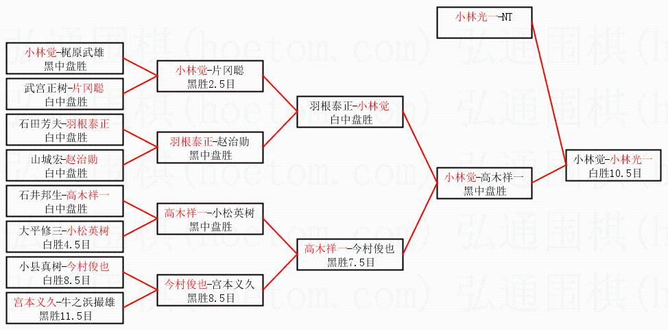 1.小林光一获得冠军,小林觉获得亚军。决赛比分:小林光一3:0小林觉。棋局: