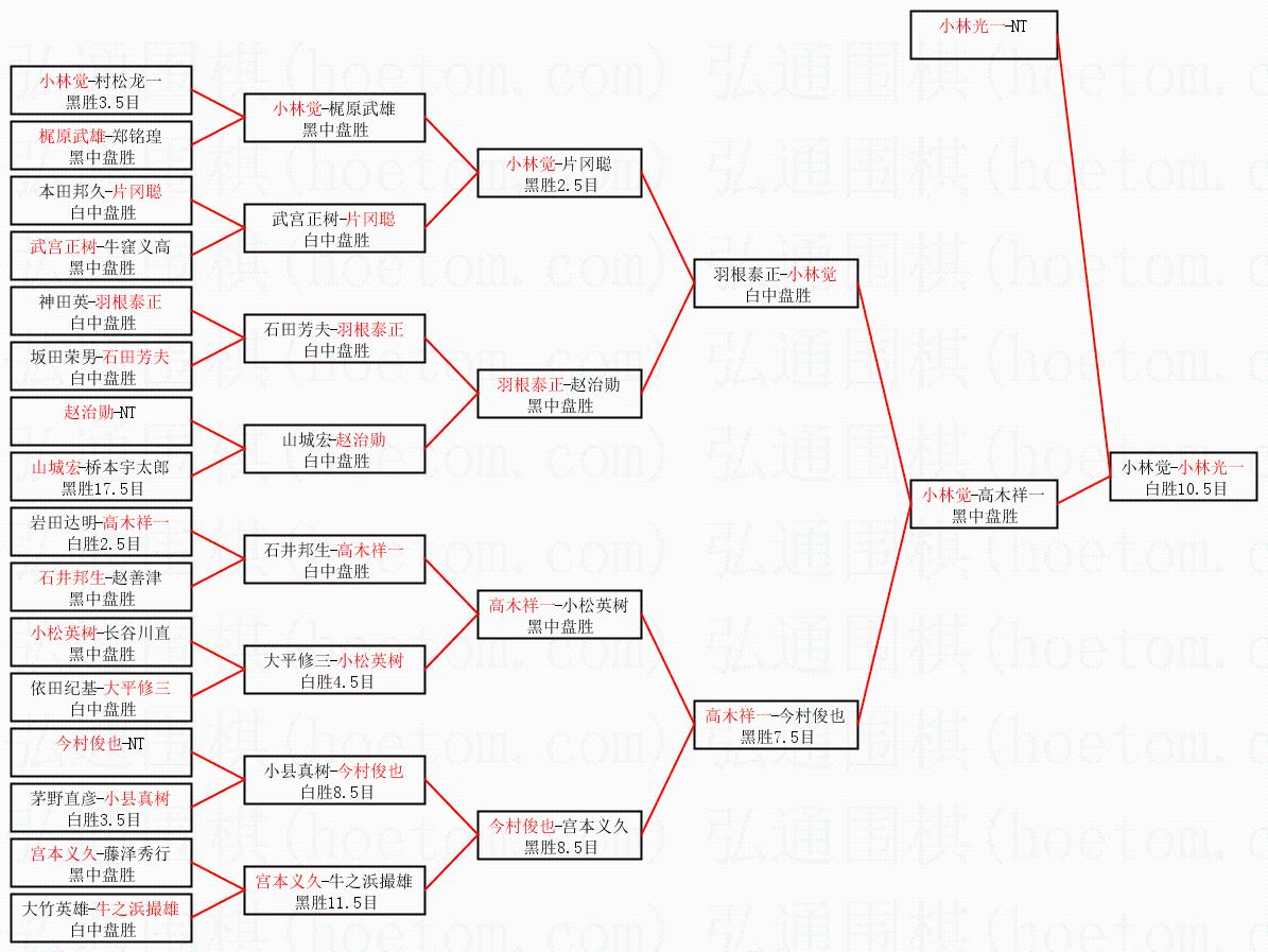 1.小林光一获得冠军,小林觉获得亚军。决赛比分:小林光一3:0小林觉。棋局: