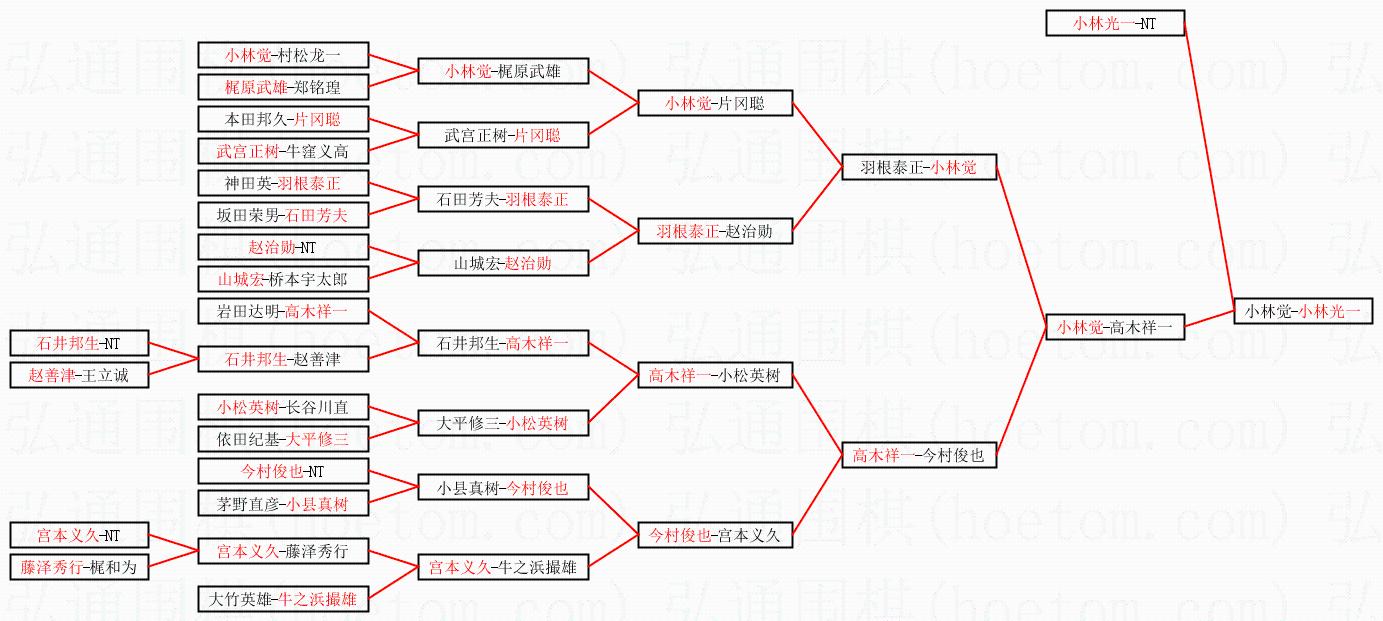 1.小林光一获得冠军,小林觉获得亚军。决赛比分:小林光一3:0小林觉。棋局: