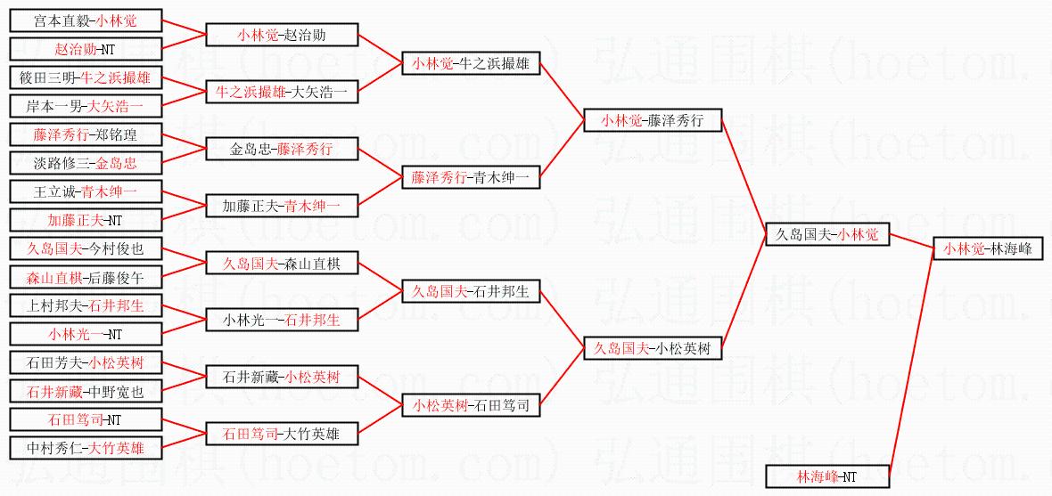 | 1.小林觉获得冠军,林海峰获得亚军。决赛比分:小林觉3:2林海峰。棋局: | ||