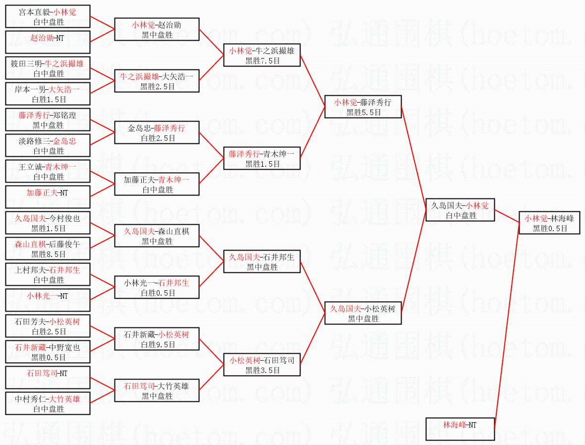 | 1.小林觉获得冠军,林海峰获得亚军。决赛比分:小林觉3:2林海峰。棋局: | ||