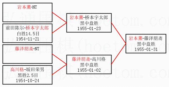 2.上半区半决赛岩本薰获胜, 比分:岩本薰 1:0 桥本宇太郎。棋局: