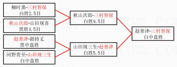 3.下半区半决赛赵善津获胜,比分:赵善津1:0山田规三生。棋局: