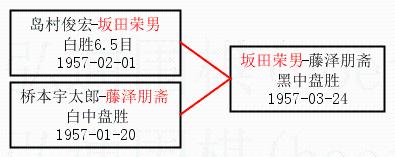 2.上半区半决赛坂田荣男获胜, 比分:坂田荣男 1:0 岛村俊宏。棋局: