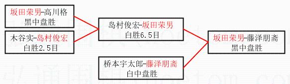 2.上半区半决赛坂田荣男获胜, 比分:坂田荣男 1:0 岛村俊宏。棋局: