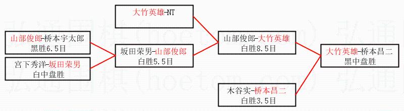 3.下半区半决赛桥本昌二获胜,比分:桥本昌二1:0木谷实。棋局: