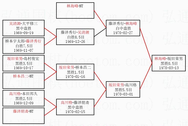 1.林海峰获得冠军,坂田荣男获得亚军。决赛比分:林海峰1:0坂田荣男。棋局: