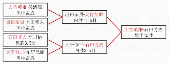 2.上半区半决赛大竹英雄获胜, 比分:大竹英雄 1:0 坂田荣男。棋局:
